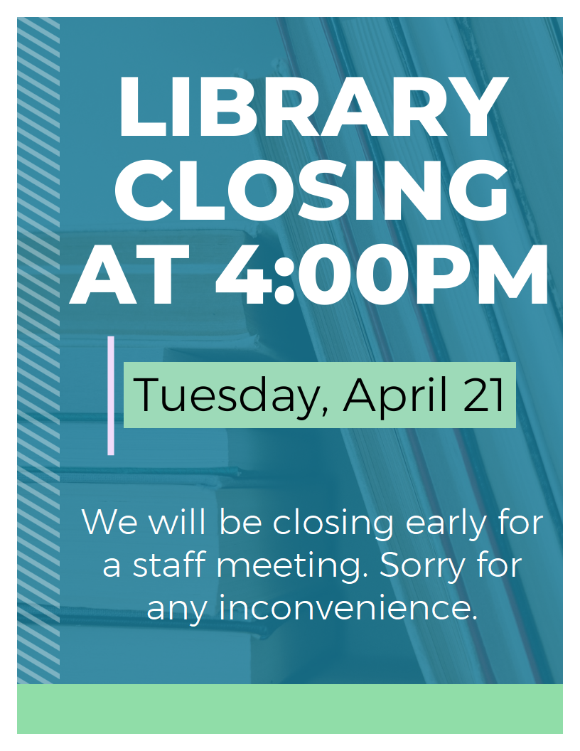 April 16, 2026 by minpt Closing Early Tuesday, April 21 Share this: Share on Facebook (Opens in new window) Facebook Share on X (Opens in new window) X Like Loading... Related