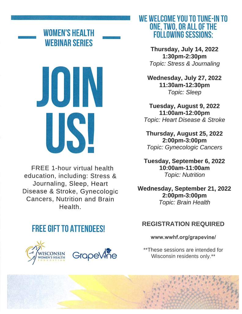 Womens Health Webinar Series Presented by the Wisconsin Women’s Health Foundation and Grapevine July 6, 2022 by minpt